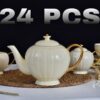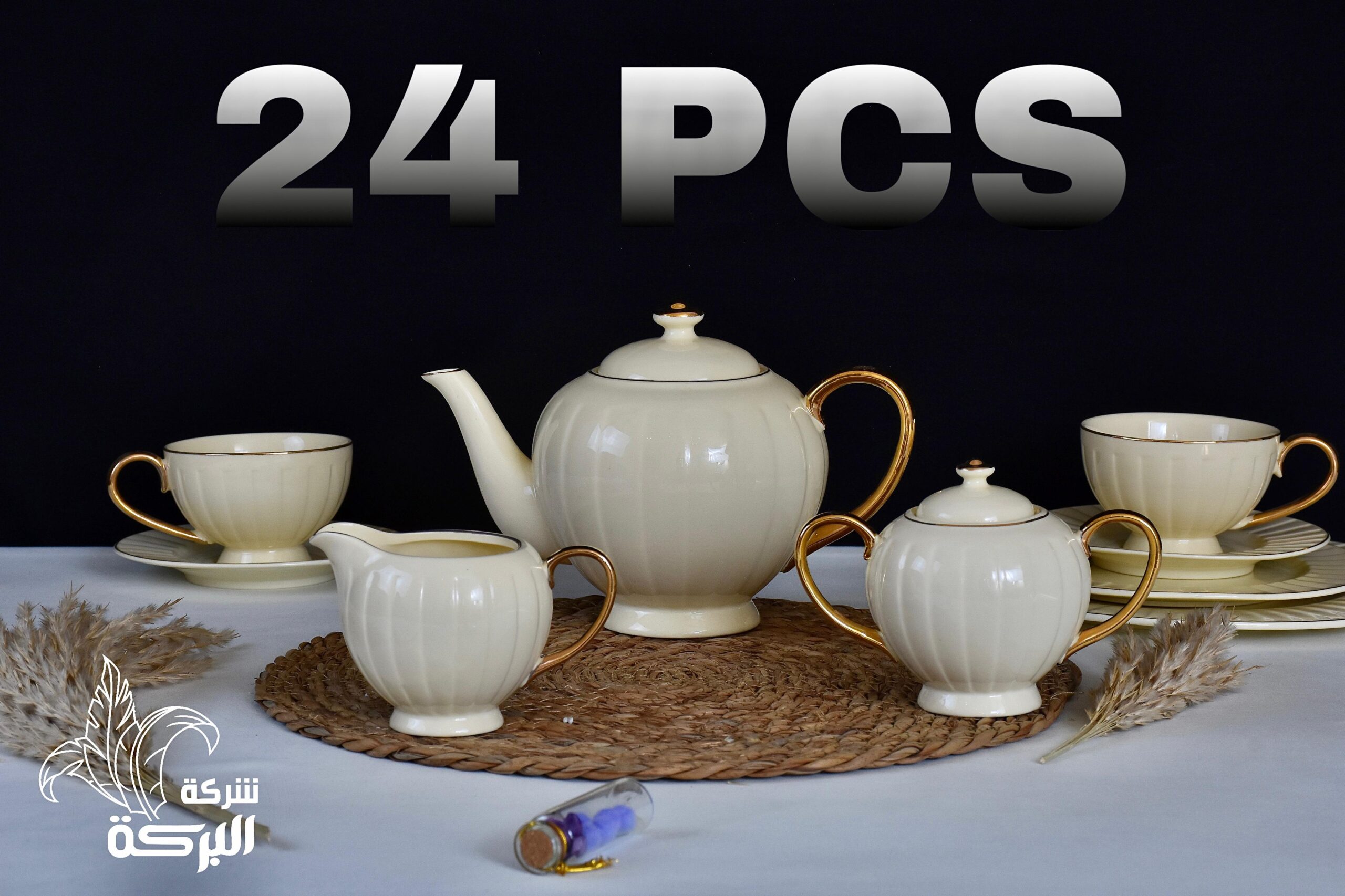 طقم شاي بجاتوة لون كريمي مكون من 24 قطعة :